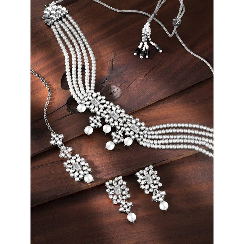 | Product Name | Aheli Adjustable Choker Necklace With Earring Maang Tikka Jewellery Set Gift For Women | |