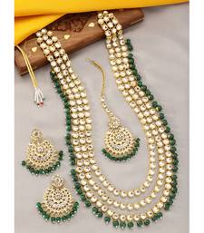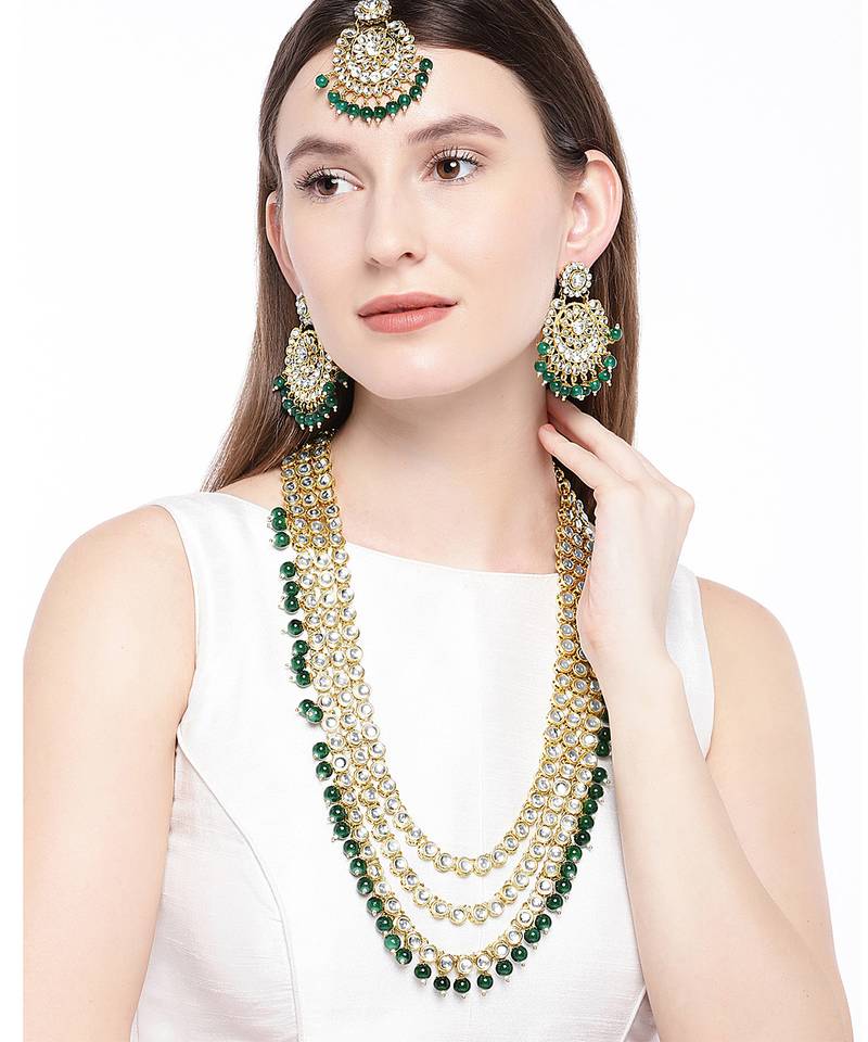 Aheli brass and kundan long necklace with maang tikka & earrings set