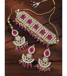 Aheli choker necklace with earrings maang tikka for women indian traditional jewellery set