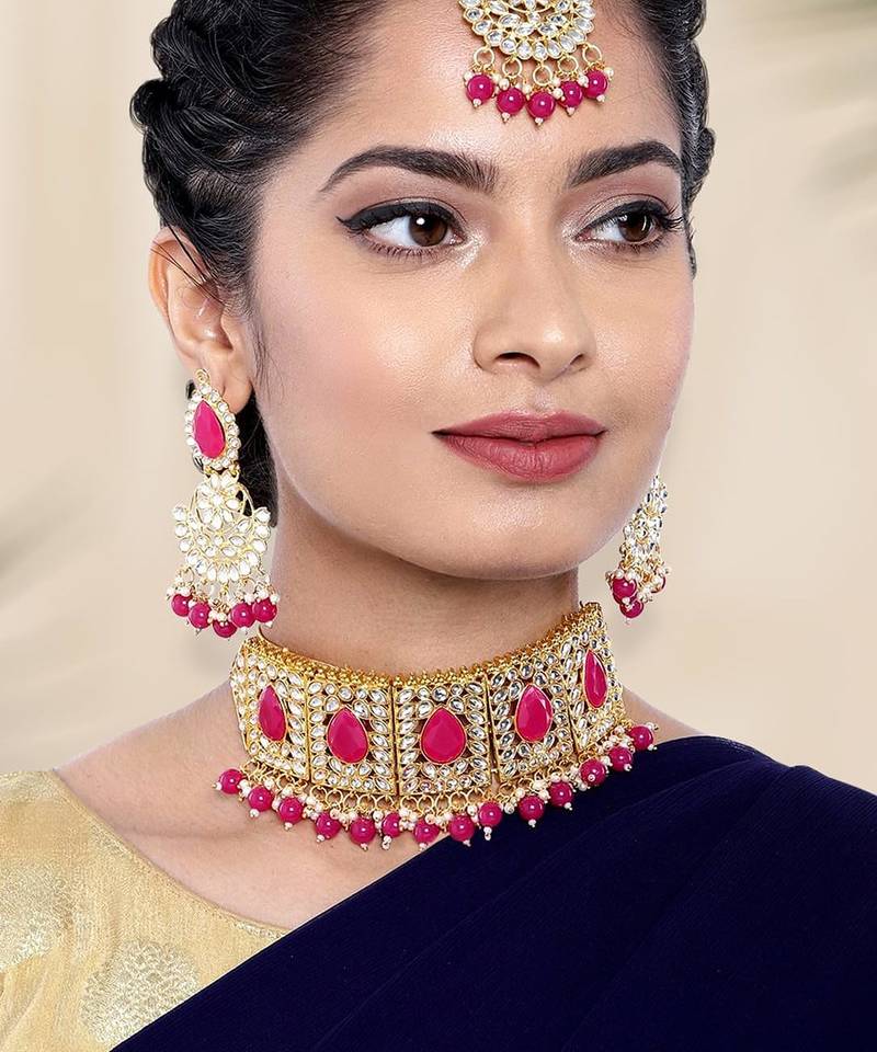 Aheli Choker Necklace With Earrings Maang Tikka For Women Indian Traditional Jewellery Set