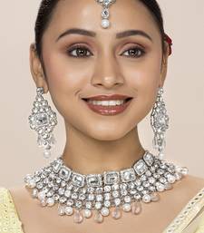 Aheli choker necklace with maang tikka earrings bridal wedding jewellery set gift for women