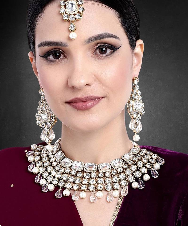 Disclaimer: Slight Variations In Color, Size, And Weight May Occur Due To Lighting, Screen Settings, And Manual Measurement. Images May Be Enlarged—Please Check Product Dimensions For Actual Size.Dimensions: Necklace Length: 21 Cm X Width: 6.5 Cm; Earrings Length: 9.2 Cm X Width: 3.9 Cm; Maangtikka Length: 18.3 Cm X Width: 3.4 Cm; Weight: 226 Grams