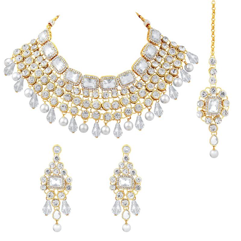 Aheli Choker Necklace With Maang Tikka Earrings Indian Traditional Bridal Wedding Jewellery Set For Women