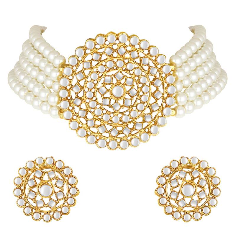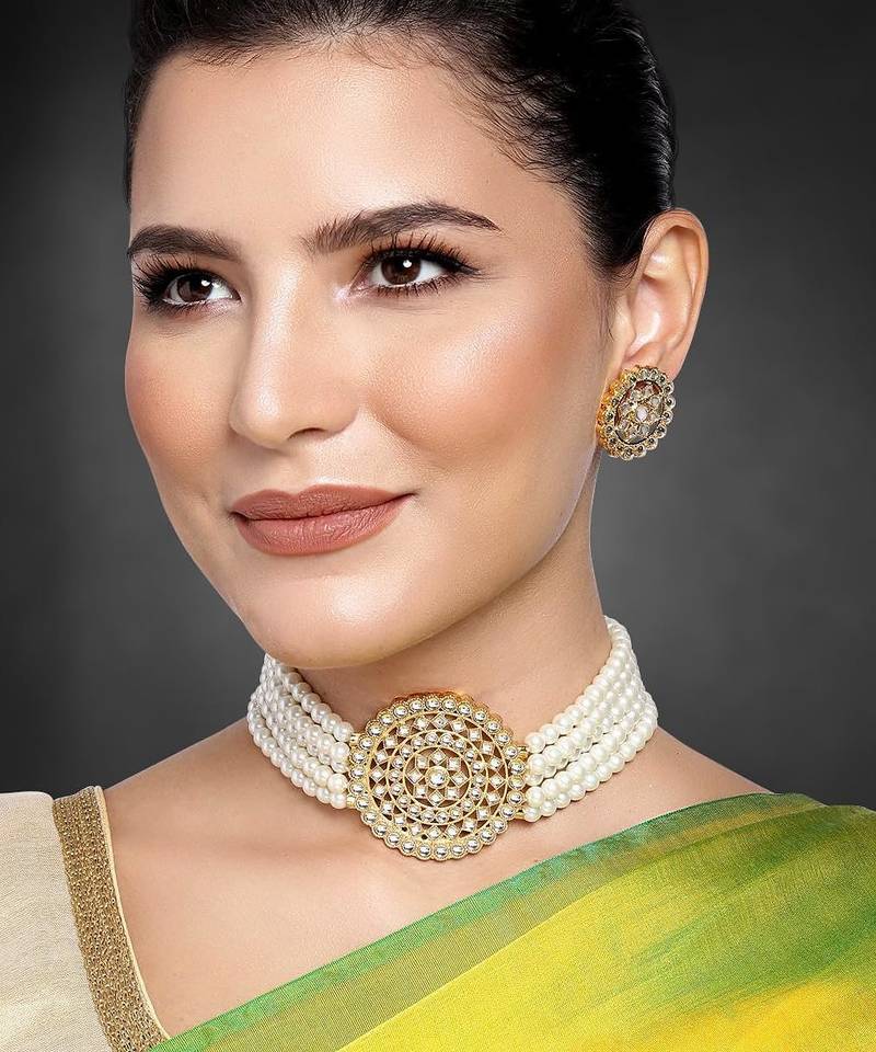 Aheli Choker Necklace With Round Earrings Traditional Jewellery Set For Women Girls