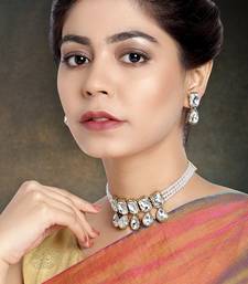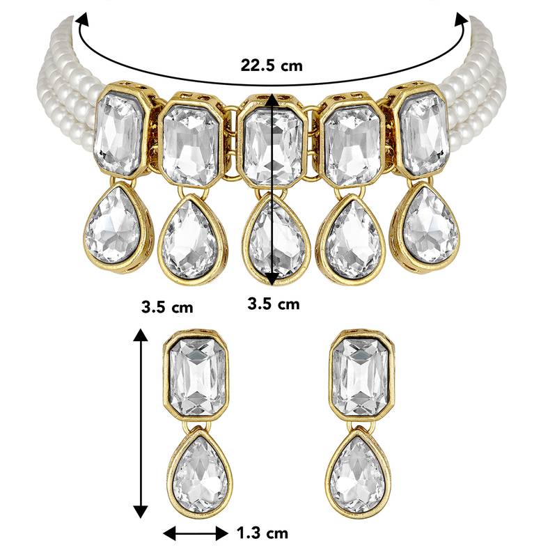 Aheli Crystal Pearl Traditional Ethnic Bridal Choker Necklace With Earrings Jewellery Set
