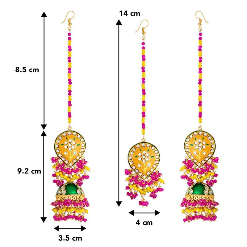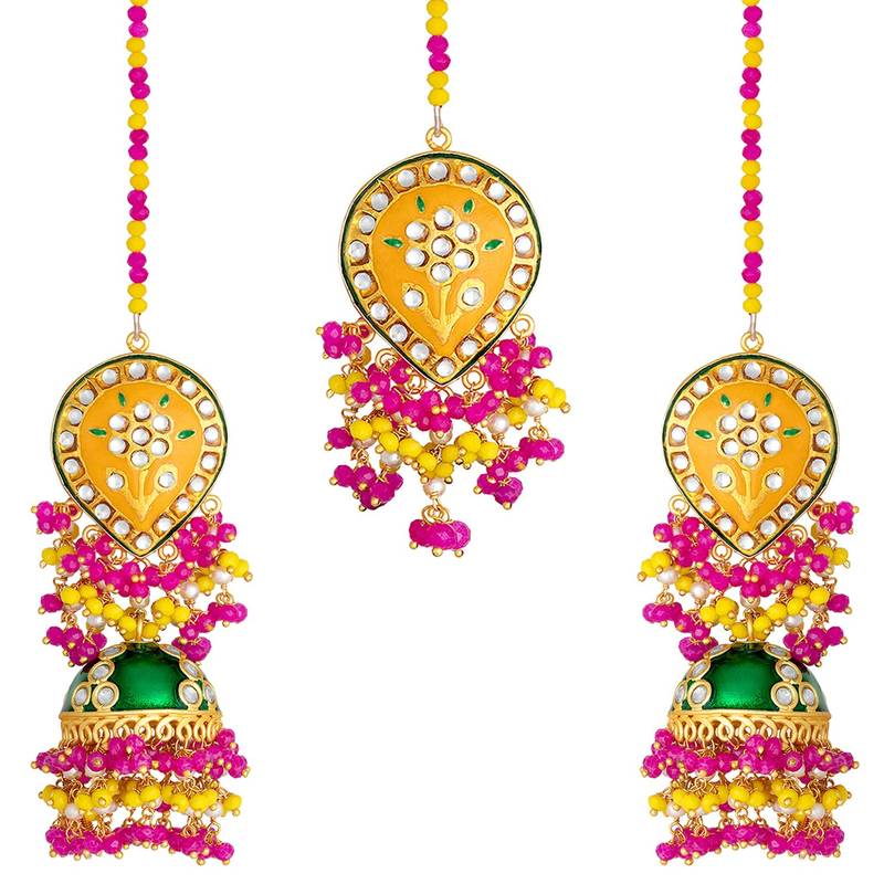 | Product Name | Aheli Enamel Meenakari Jhumki Earrings With Maang Tikka Jewellery Set For Women | |