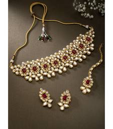 Aheli ethnic indian traditional jewellery kundan pearl maroon floral necklace earring mang tikka set