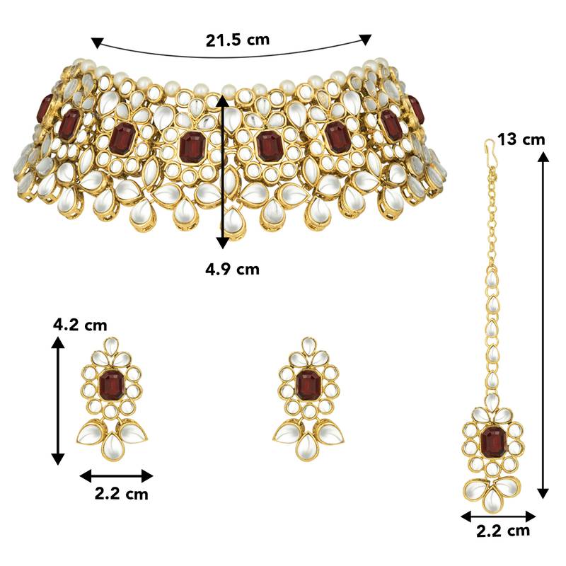Aheli Ethnic Indian Traditional Jewellery Kundan Pearl Maroon Floral Necklace Earring Mang Tikka Set