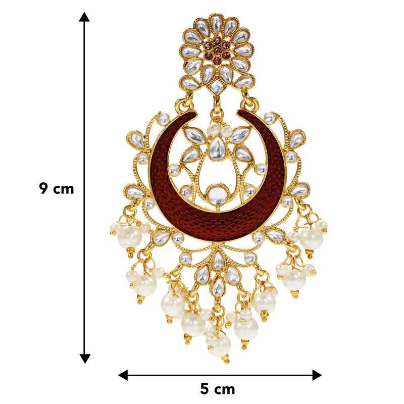 | Product Name | Aheli Gold Plated Brass Traditional Jewellery Kundan Pearl Golden Maroon Chandbali Earrings Gift For Women Girls | |