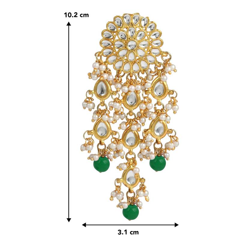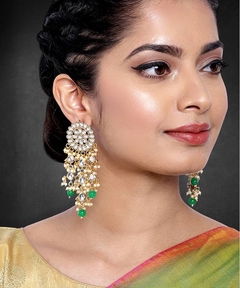 | Product Name | Aheli Gold Plated Kundan Studded Beaded Green Chandelier Classic Drop Earrings For Women Traditional Ethnic Jewellery | |