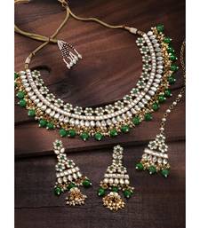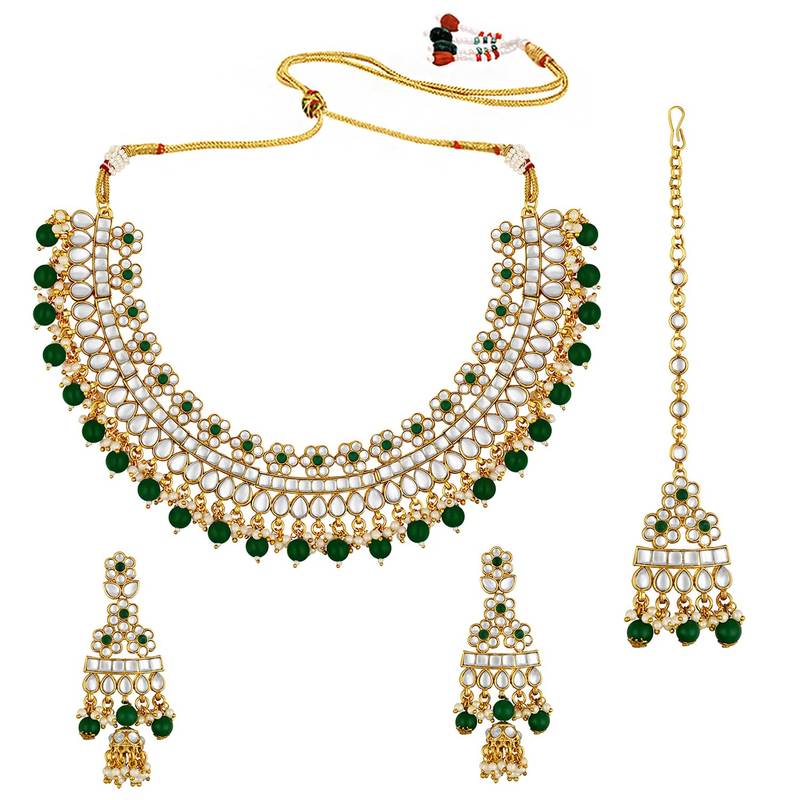 Aheli green choker necklace with earrings maang tikka for women indian traditional jewellery set