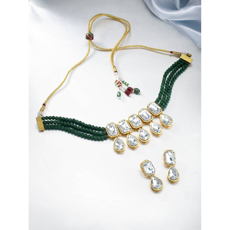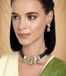 Aheli green crystal pearl traditional ethnic bridal choker necklace with earrings jewellery set