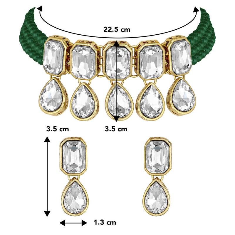 Aheli Green Crystal Pearl Traditional Ethnic Bridal Choker Necklace With Earrings Jewellery Set