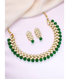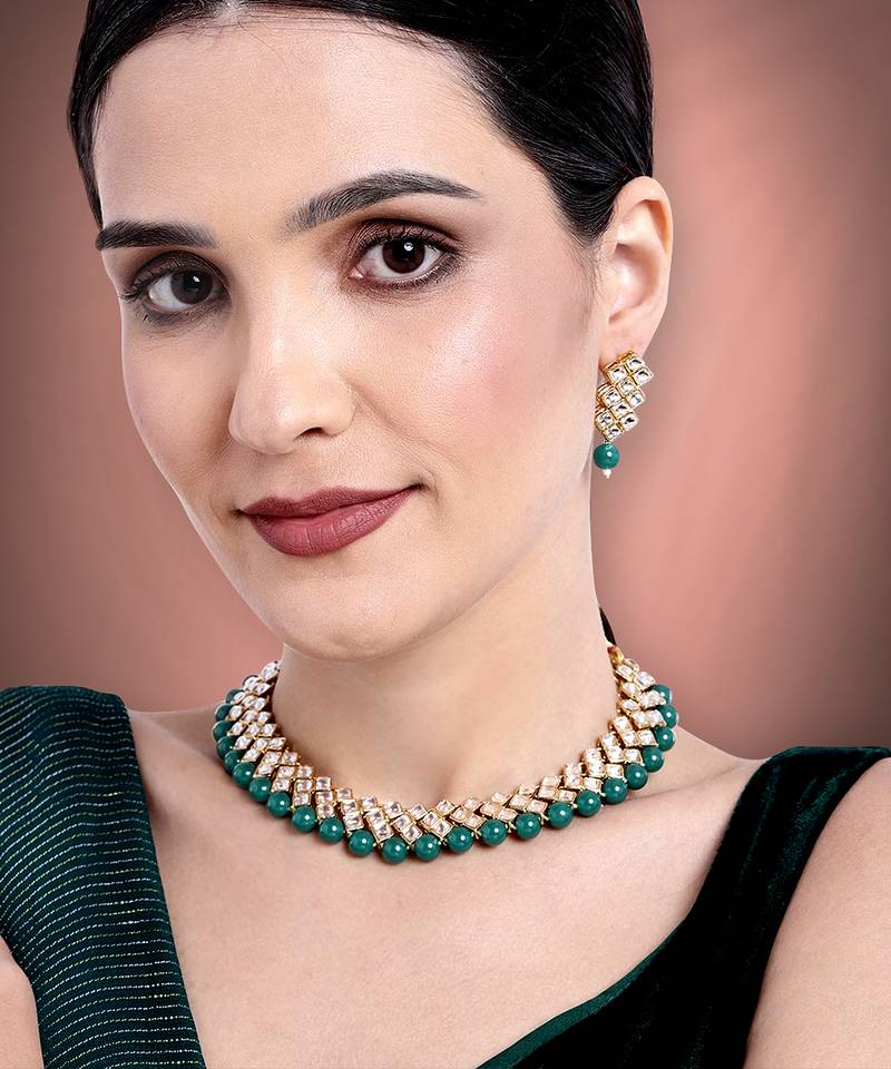 Aheli Green Indian Kundan Pearl Bridal Traditional Choker Necklace Jewellery Set With Earrings
