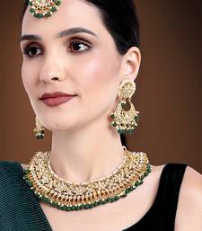 Aheli Green Kundan Choker Necklace Earrings With Maang Tikka Jewellery Set