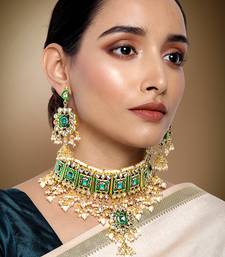 Aheli green meenakari beads studded bridal choker necklace earring jewellery set