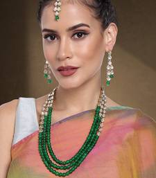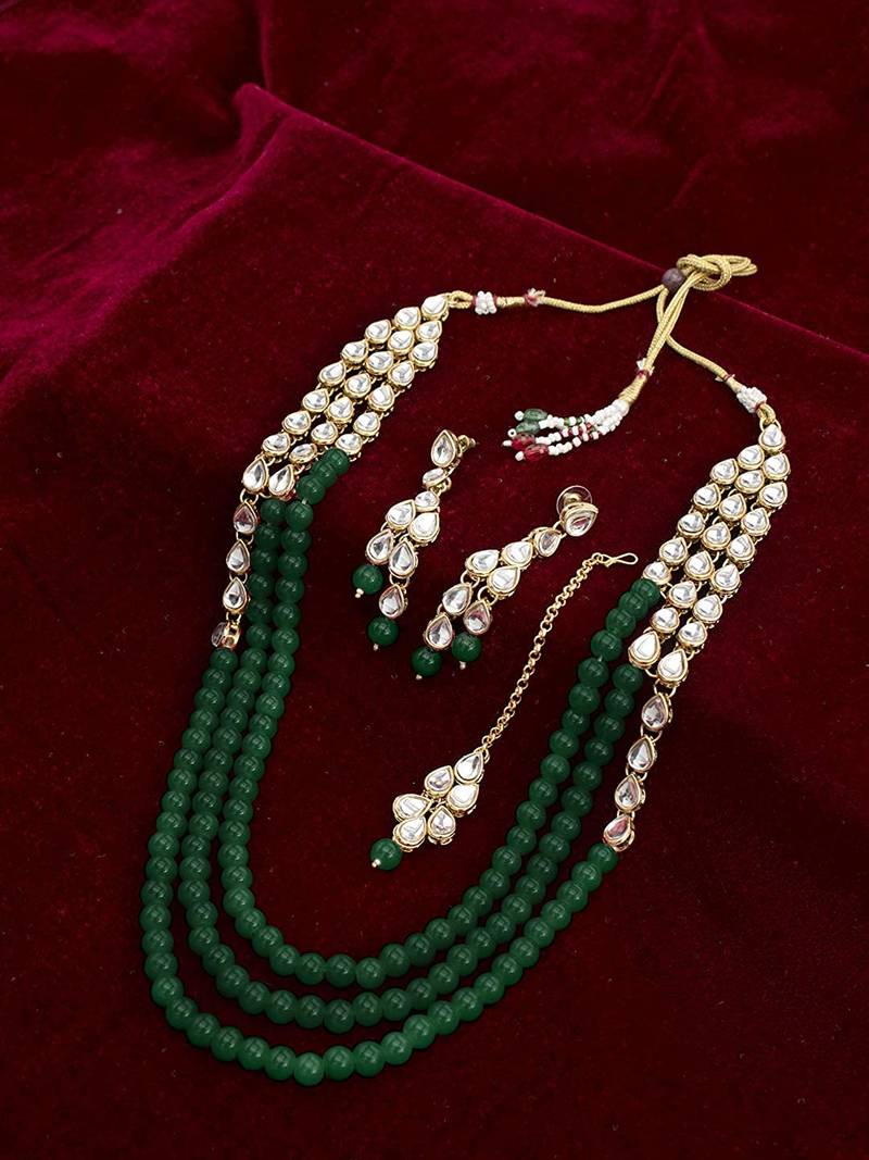 Aheli Green Traditional Jewellery Kundan Pearl Layered Necklace Earring Maang Tika Set Fancy