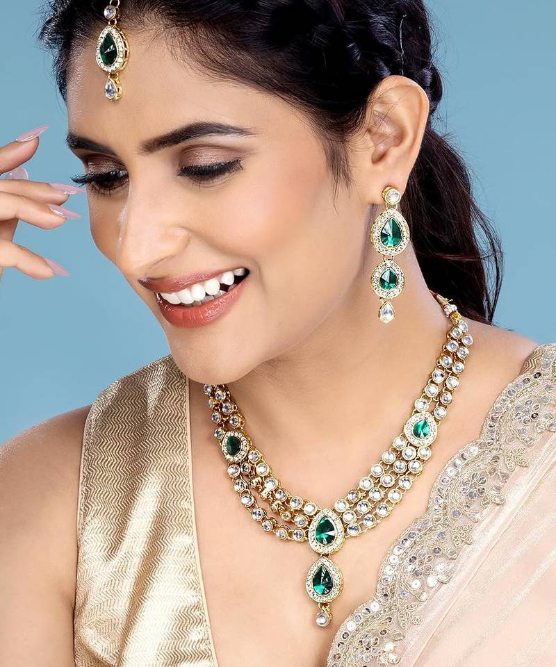 | Product Name | Aheli Green Traditional Kundan Necklace Jewellery Set Gift For Women | |