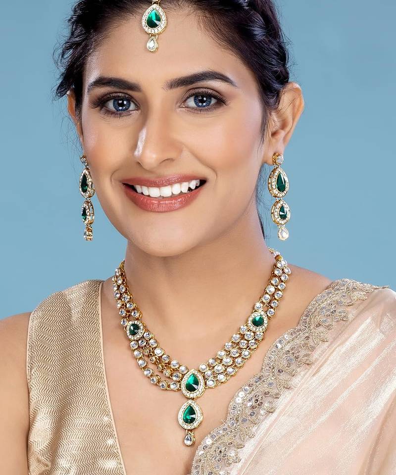 Aheli green traditional kundan necklace jewellery set gift for women