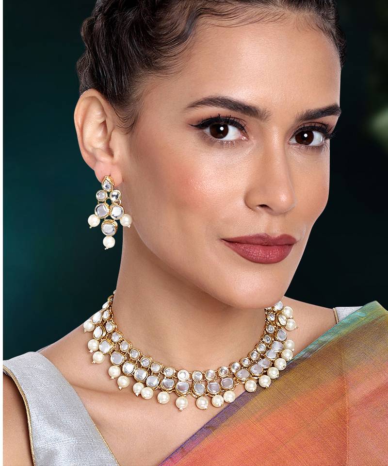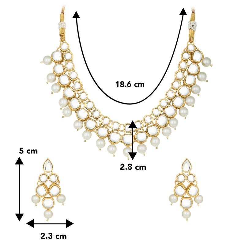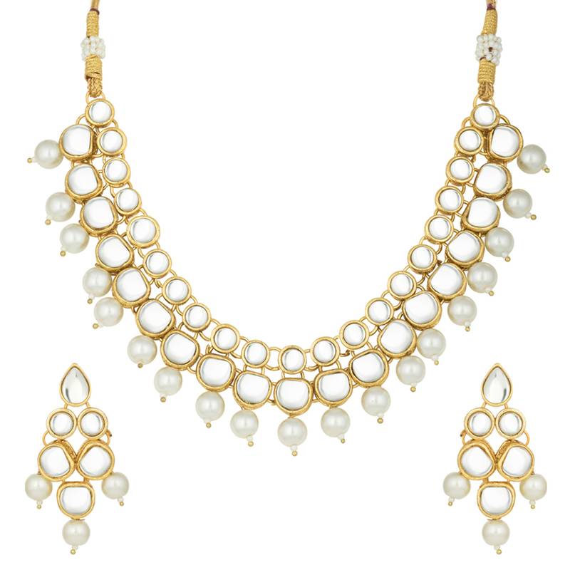 Aheli Indian Ethnic Kundan White Pearl Traditional Necklace Jewellery Set With Earrings