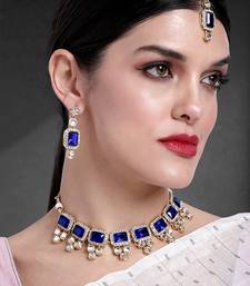 Aheli kundan blue crystal necklace earring maang tikka traditional jewellery set