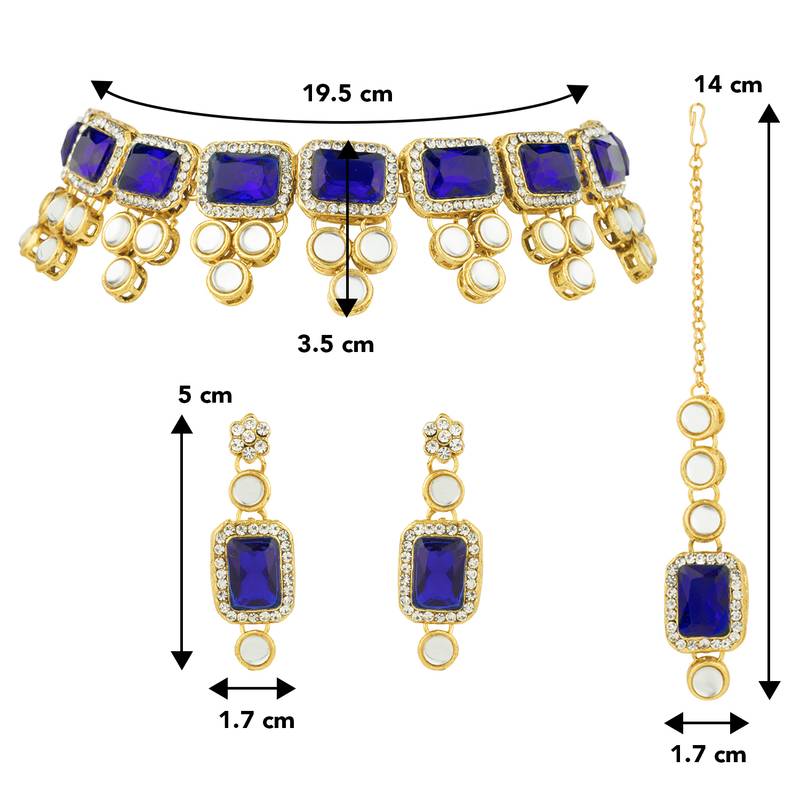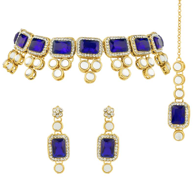 Aheli Kundan Blue Crystal Necklace Earring Maang Tikka Traditional Jewellery Set