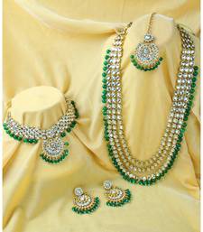 Dimensions: Long Necklace Length: 56 Cm X Width: 5.1 Cm; Short Necklace Length: 28.7 Cm X Width: 7 Cm; Earrings Length: 6.5 Cm X Width: 4.7 Cm; Maangtikka Length: 17.8 Cm X Width: 4.7 Cm; Weight: 401 Grams