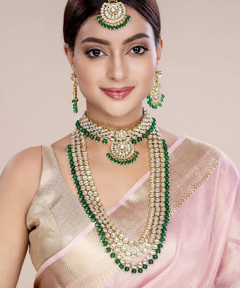 1 Choker/ 1 Long Necklace/ 1 Pair Of Earrings/ 1 Maangtikka