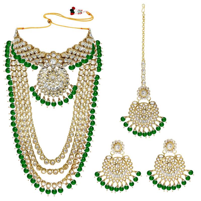 Aheli kundan bridal long necklace choker earrings maangtikka jewellery set for women