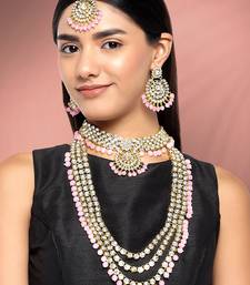 Dimensions: Long Necklace Length: 56 Cm X Width: 5.1 Cm; Short Necklace Length: 28.7 Cm X Width: 7 Cm; Earrings Length: 6.5 Cm X Width: 4.7 Cm; Maangtikka Length: 17.8 Cm X Width: 4.7 Cm; Weight: 401 Grams