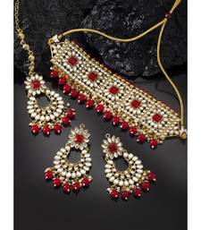 Aheli kundan choker necklace with earrings maang tikka for women indian traditional jewellery set