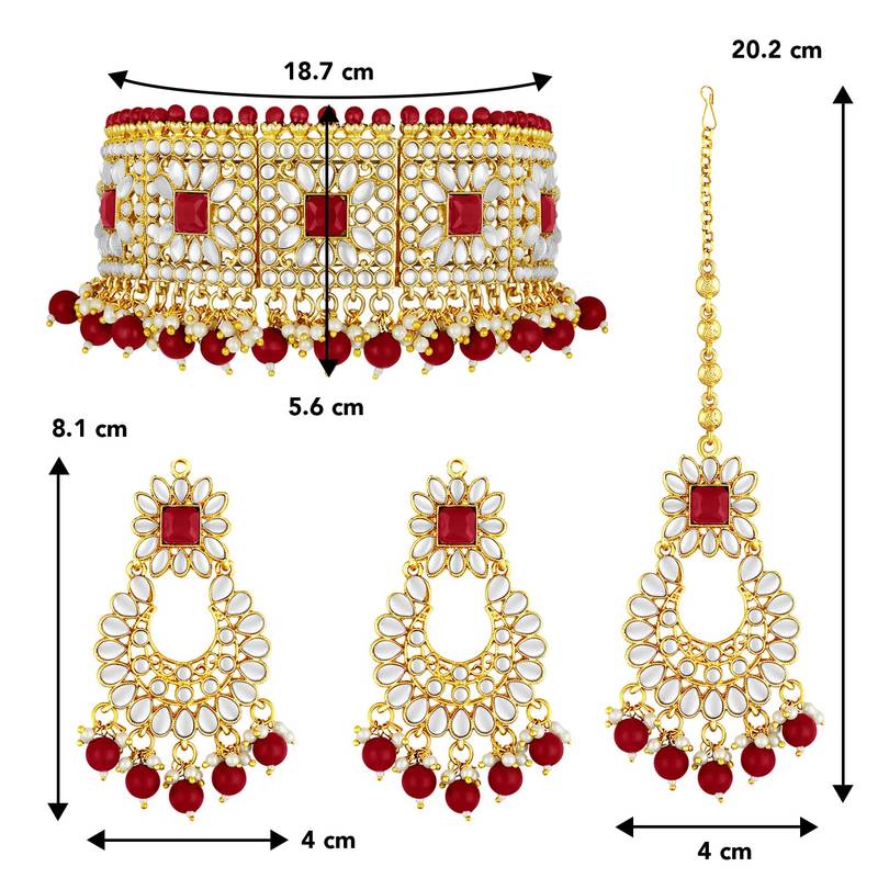 Disclaimer: Slight Variations In Color, Size, And Weight May Occur Due To Lighting, Screen Settings, And Manual Measurement. Images May Be Enlarged—Please Check Product Dimensions For Actual Size.Dimensions: Necklace Length: 18.7 Cm X Width: 5.6 Cm; Earrings Length: 8.1 Cm X Width: 4 Cm; Maangtikka Length: 20.2 Cm X Width: 4 Cm; Weight: 117 Grams