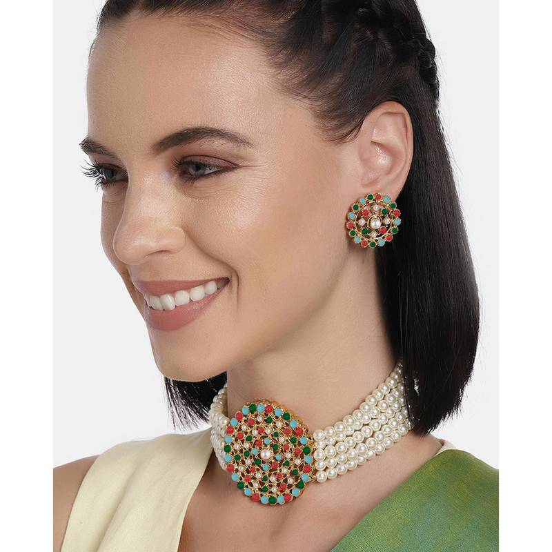 Aheli Kundan Choker Necklace With Round Earrings Traditional Jewellery Set For Womens