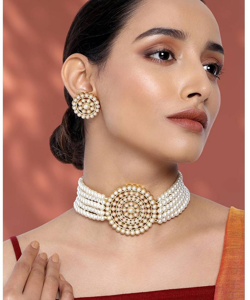 Product Name Aheli Kundan Choker Necklace With Round Earrings Traditional Jewellery Set For Womens