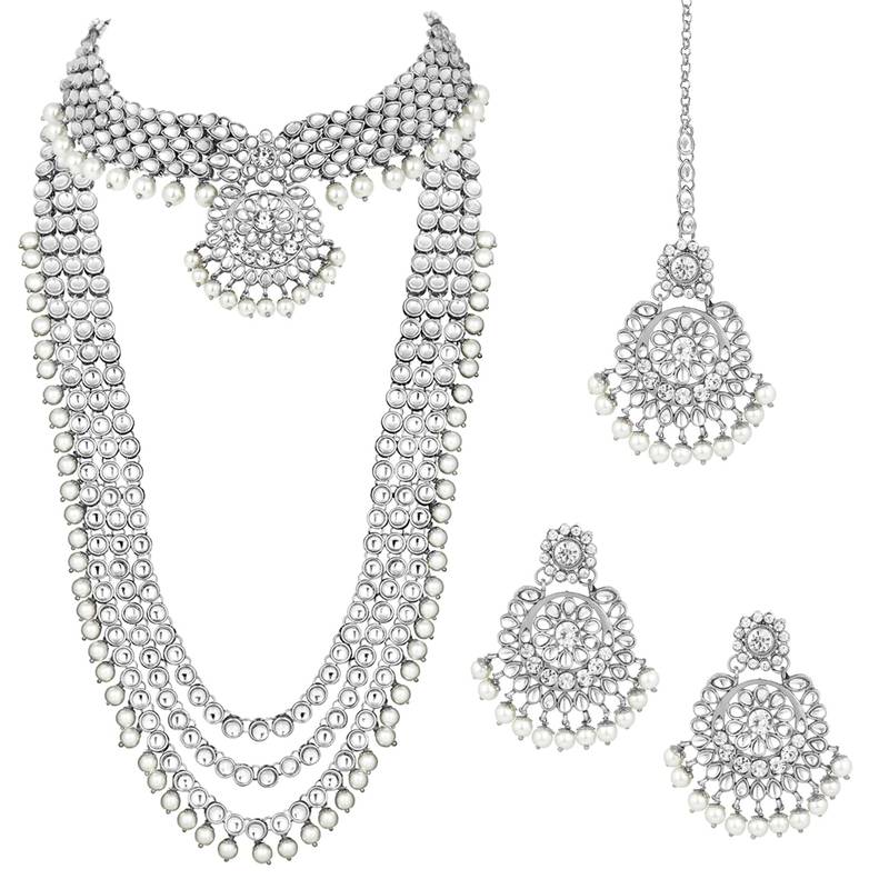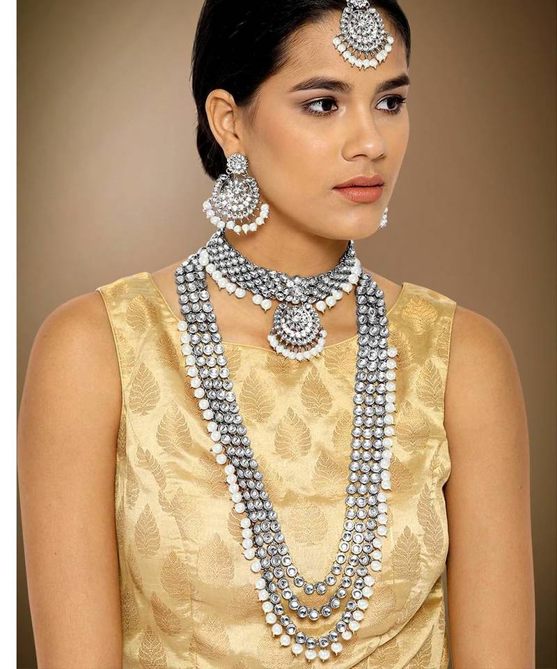 1 Choker/ 1 Long Necklace/ 1 Pair Of Earrings/ 1 Maangtikka