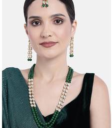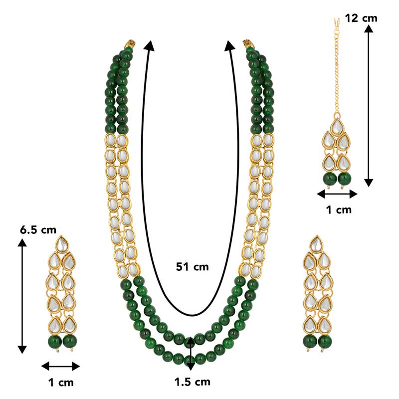 Aheli kundan faux bead layered long necklace earring mang tikka traditional jewellery set