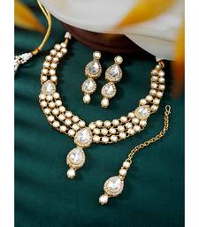 Aheli kundan long necklace with earring maang tikka jewellery set