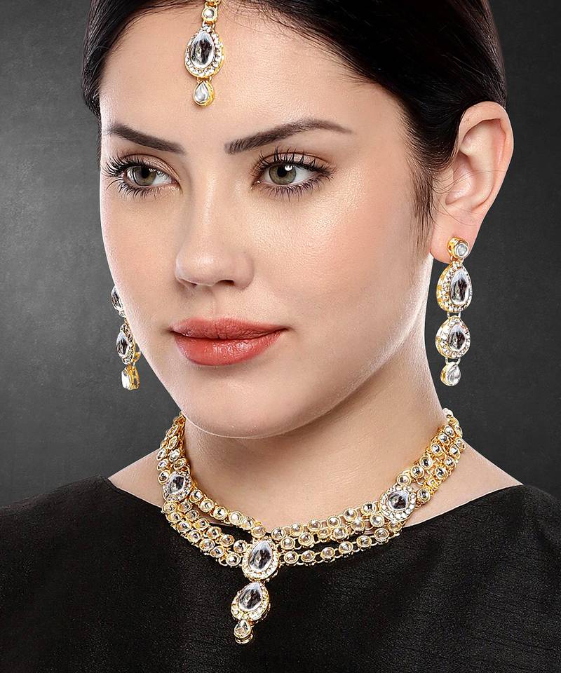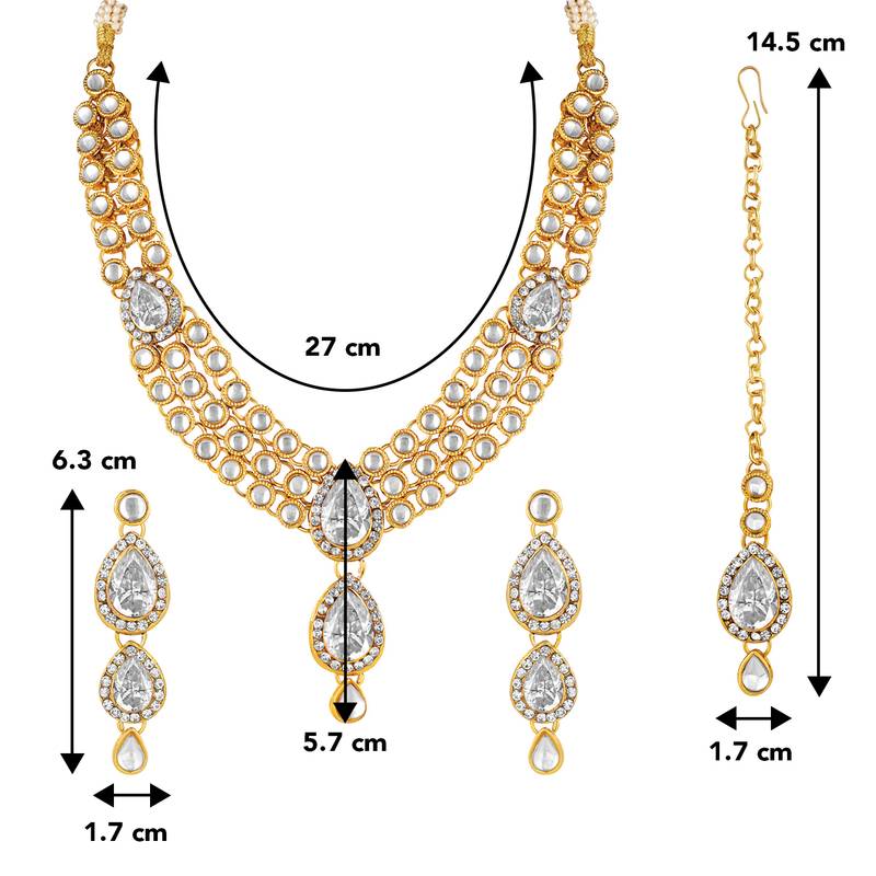 Aheli Kundan Long Necklace With Earring Maang Tikka Jewellery Set