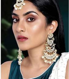 Aheli kundan pearl long dangle chandbali earring maang tikka jewellery set for women