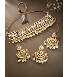 Aheli kundan studded choker necklace earrings & maang tikka set wedding jewellery set