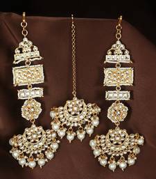 Aheli long traditional kundan faux pearl chandbali earrings with maang tikka set for women