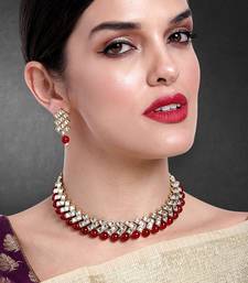 Aheli Maroon Ethnic Kundan Pearl Bridal Traditional Choker Necklace Jewellery Set With Earrings