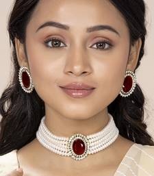 Aheli maroon stone beaded adjustable necklace jewellery set for women girls