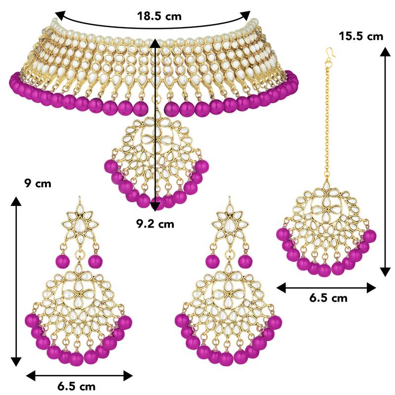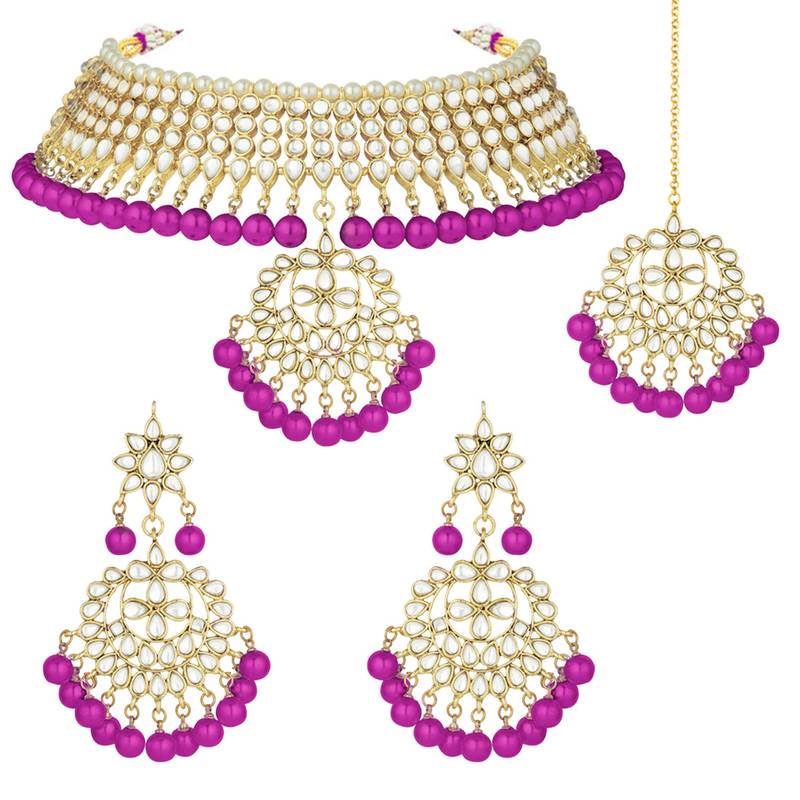 Aheli Pearl Kundan Choker Necklace Earring Maang Tikka Traditional Jewellery Set