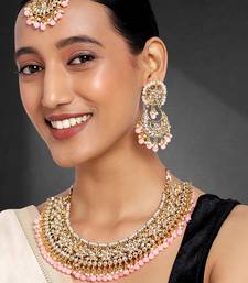 Aheli pink kundan choker necklace earrings with maang tikka jewellery set