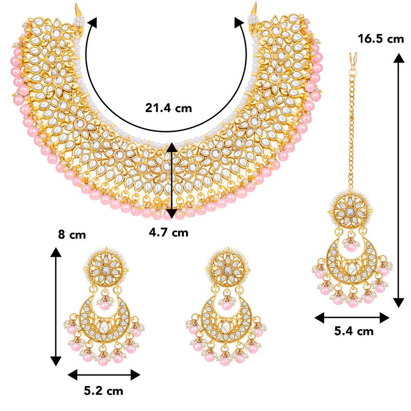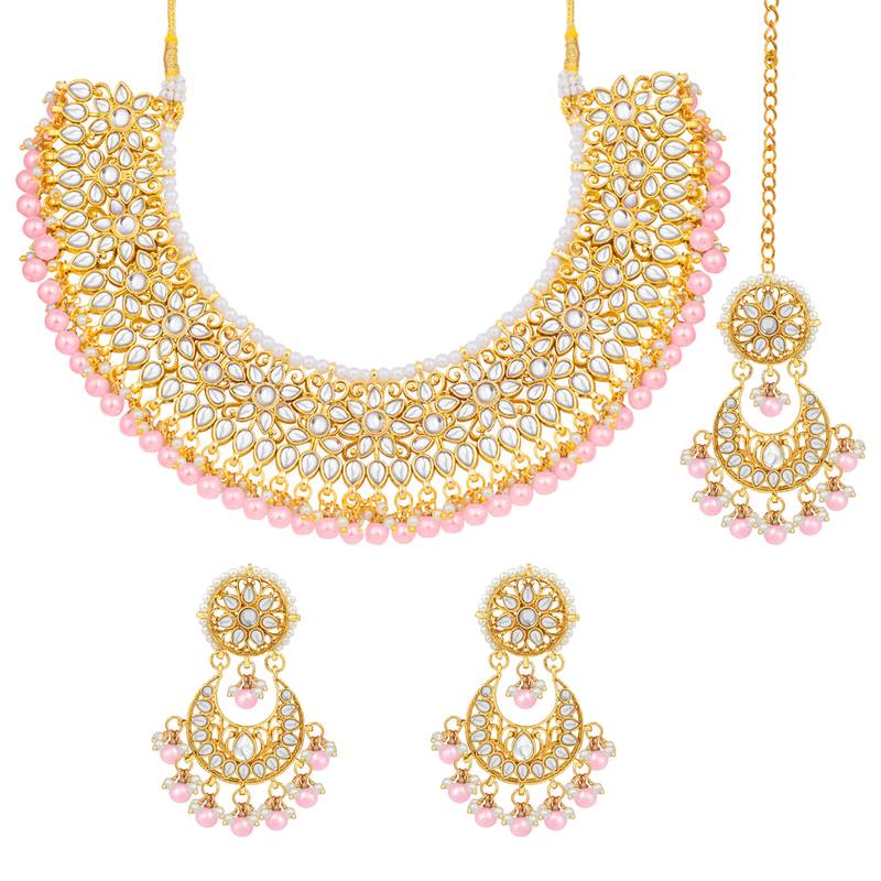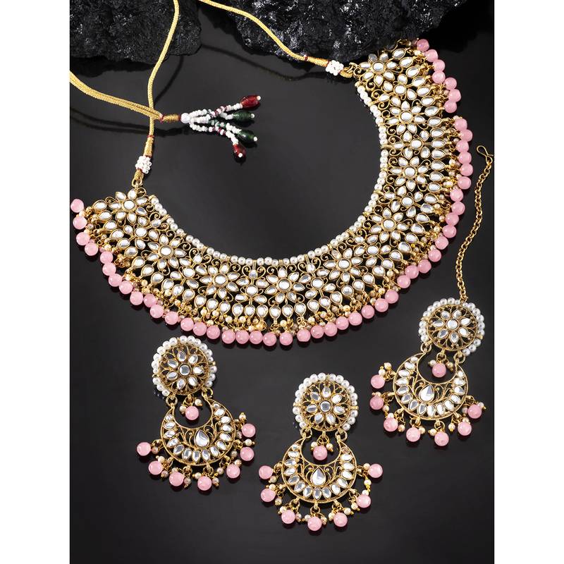 Aheli Pink Kundan Choker Necklace Earrings With Maang Tikka Jewellery Set