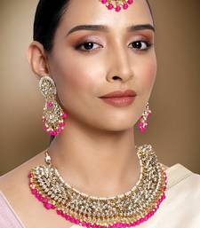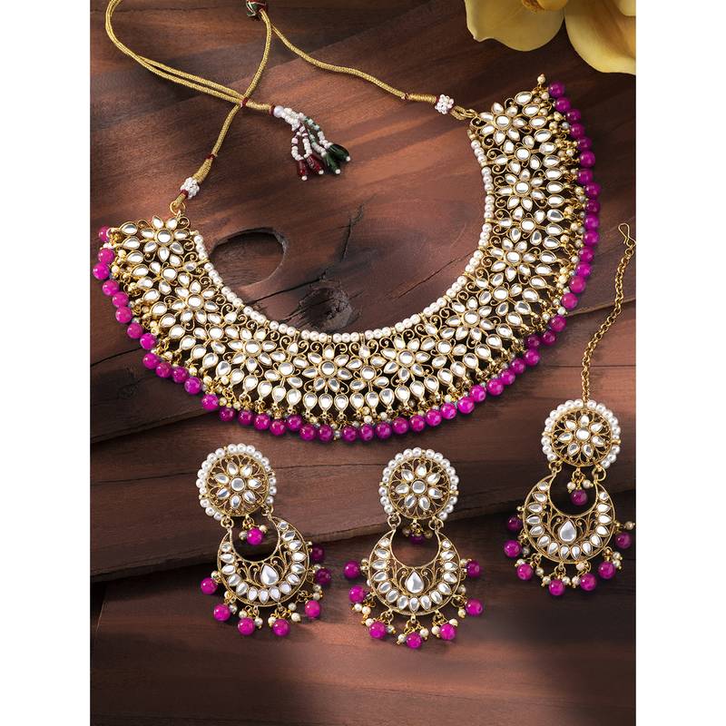 Aheli Rani Pink Kundan Choker Necklace Earrings With Maang Tikka Jewellery Set