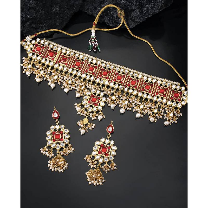 Aheli Red Meenakari Bridal Choker Necklace Dangler Earring Jewellery Set