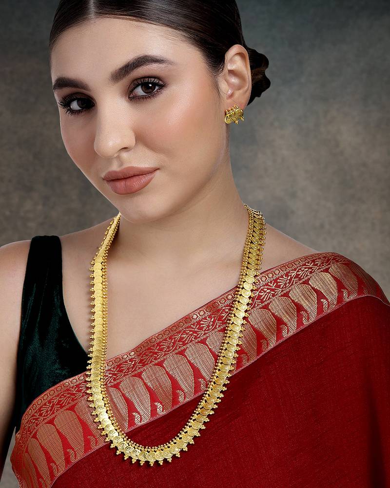 Aheli South Indian Traditional Bridal Long Maharani Coin Necklace Earrings Jewellery Set