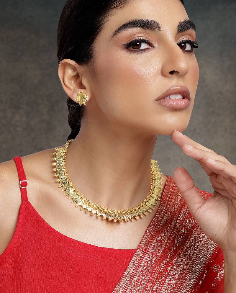 Aheli south indian traditional bridal short maharani coin necklace earrings jewellery sets